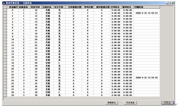 3.移動(dòng)交換機(jī)上能實(shí)時(shí)跟蹤移動(dòng)臺(tái)入網(wǎng)、接續(xù)狀態(tài)、通話記錄等信令信息。