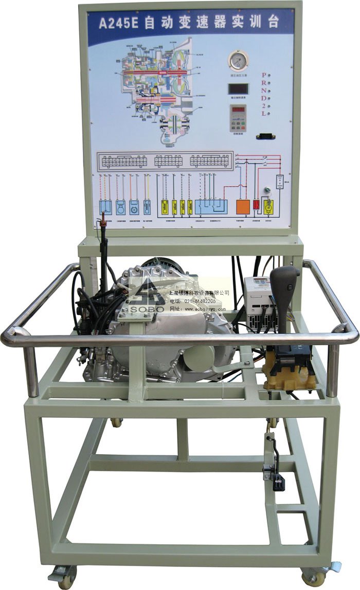 本變速器實訓(xùn)臺是本公司采用一汽豐田自花冠動變速器為適應(yīng)汽車教學(xué)需求而研制的,該實訓(xùn)臺由電控變速器(八成新)、操作顯示面板及發(fā)動機彩色電氣原理圖電腦控制柜、可移動式臺架(萬向腳輪)、驅(qū)動系統(tǒng)(腳踏式油門踏板)變頻電機驅(qū)動、剎車系統(tǒng)(腳踏液壓盤試剎車)、啟動系統(tǒng)(電門鎖方式啟動)、車速傳感器、電磁閥執(zhí)行器、原車電腦、具有發(fā)動機運轉(zhuǎn)及顯示(轉(zhuǎn)速.車速.檔位)、液壓油壓力顯示表(顯示換檔過程油壓)、自動變速器電磁閥工作指示LED燈、原車OBD-Ⅱ診斷座、故障設(shè)置區(qū)可設(shè)置12路故障(老師設(shè)置任一路線路故障)、故障排除區(qū)(學(xué)生通過各種儀器、儀表、)在面板上用專用排故線連接排除故障、傳感器信號模擬等多項功能、具結(jié)構(gòu)緊湊、操作方便、安全可靠、教學(xué)直觀、是汽車自動變速器實物教學(xué)不可缺少的實驗室設(shè)備之一。