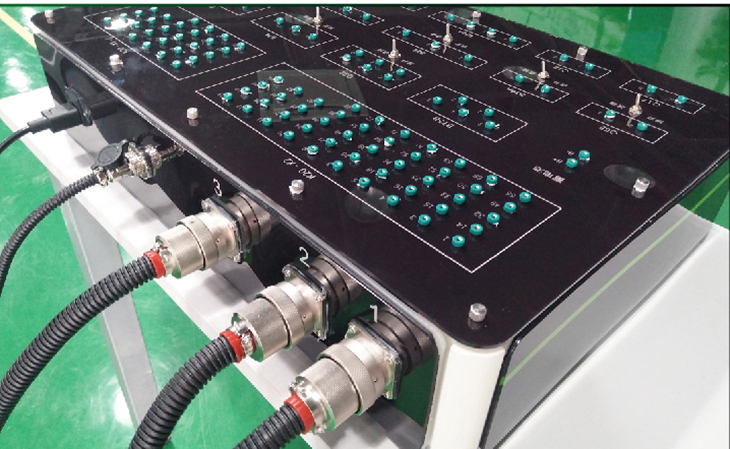 4、機(jī)械故障設(shè)置終端通過更換面板上不同功能的插件和短路跨接線實(shí)現(xiàn)斷路、線路虛接、對地短路、對正極短路故障設(shè)置,在機(jī)械故障設(shè)置終端不變的情況下更換不同的連接線束和檢測面板可實(shí)現(xiàn)不同系統(tǒng)的實(shí)訓(xùn)操作;