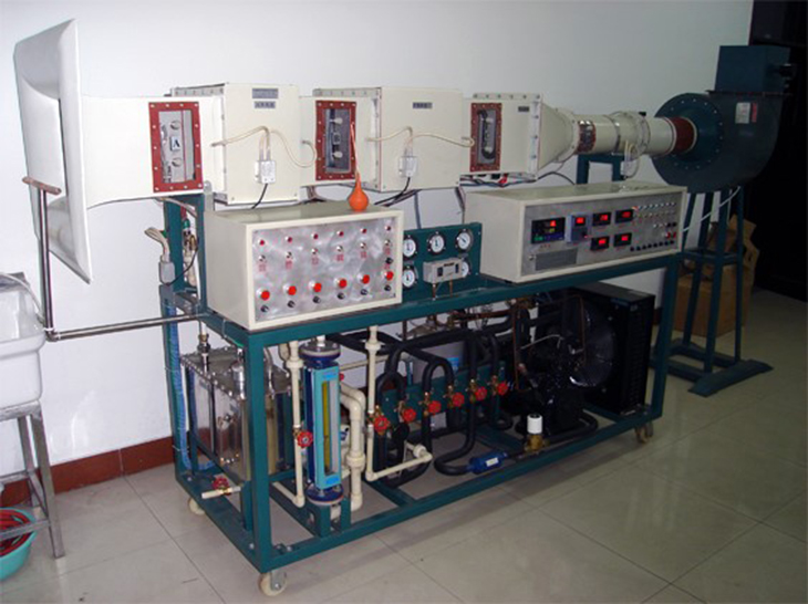 本裝置集直流空調(diào),制冷壓縮機性能,制冷熱泵,表冷器性能,加熱器性能于一體,可進行空氣的加熱,加濕,冷卻,干燥,蒸發(fā)器,冷凝器進行換相,可測出各點溫度、濕度、壓力、風(fēng)量、水流量及功率,計算出制冷量、功率、制冷系數(shù)、效率、并進行熱平衡計算。