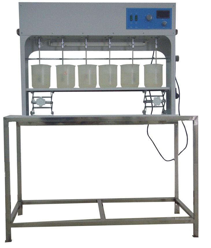 六聯(lián)攪拌裝置、燒杯6個(gè)、不銹鋼升降臺、不銹鋼框架。
