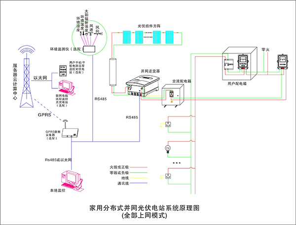 太陽電池組件在太陽光的照射下產(chǎn)生直流電流;太陽能控制器則協(xié)調(diào)太陽能電池板、蓄電池和負載的工作,具有自動防止儲能蓄電池過充電和過放電的功能。蓄電池在系統(tǒng)中的作用就是存儲能量,還能對系統(tǒng)起著調(diào)節(jié)電量、穩(wěn)定輸出的作用。逆變器的作用是將蓄電池的直流電轉(zhuǎn)變?yōu)檫m合負載使用的正弦波交流電,逆變器輸出的交流電能進入配電柜;在配電柜內(nèi)裝有用于輸出控制、過流保護、防雷保護等器件。