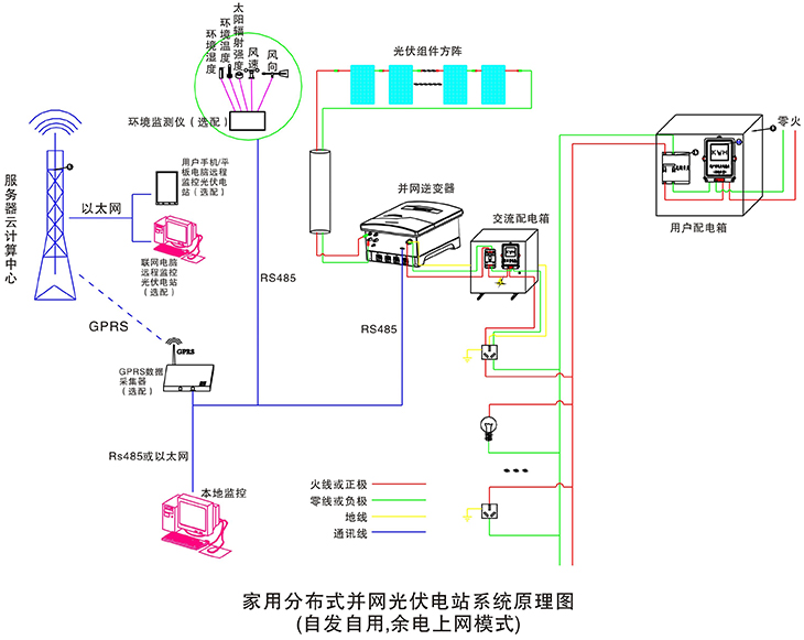 在晴朗的白天,裝在屋頂上的光伏組件發(fā)出的直流電經(jīng)過并網(wǎng)逆變器逆變成與電網(wǎng)同頻率同相位的單相交流電給負(fù)載進(jìn)行供電,在夜晚或陰雨天等太陽(yáng)光照不足的情況下,系統(tǒng)處于待機(jī)狀態(tài),負(fù)載用電全部來自電網(wǎng)。您可以通過系統(tǒng)監(jiān)控軟件來實(shí)時(shí)查看系統(tǒng)的運(yùn)行狀態(tài)和故障信息,或者是選配遠(yuǎn)程通訊數(shù)據(jù)采集器,將系統(tǒng)工作數(shù)據(jù)通過GPRS或以太網(wǎng),傳輸?shù)侥氖謾C(jī)、平板電腦或任意一臺(tái)聯(lián)網(wǎng)的電腦,以便于您遠(yuǎn)程實(shí)時(shí)掌控電站的信息。