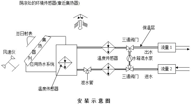 1.太陽能系統(tǒng):太陽能真空管式集熱器、蓄熱水箱
