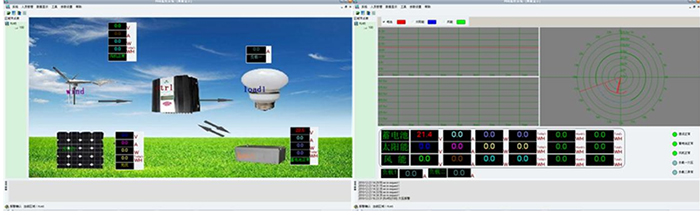 ◆ 顯示內(nèi)容:蓄電池電壓、風(fēng)機電壓、光伏電壓、風(fēng)機電流、光伏電流、風(fēng)機功率、光伏功率,能量模擬圖,當(dāng)前風(fēng)速(米/秒),當(dāng)前風(fēng)向(度),當(dāng)前風(fēng)力資源平估。