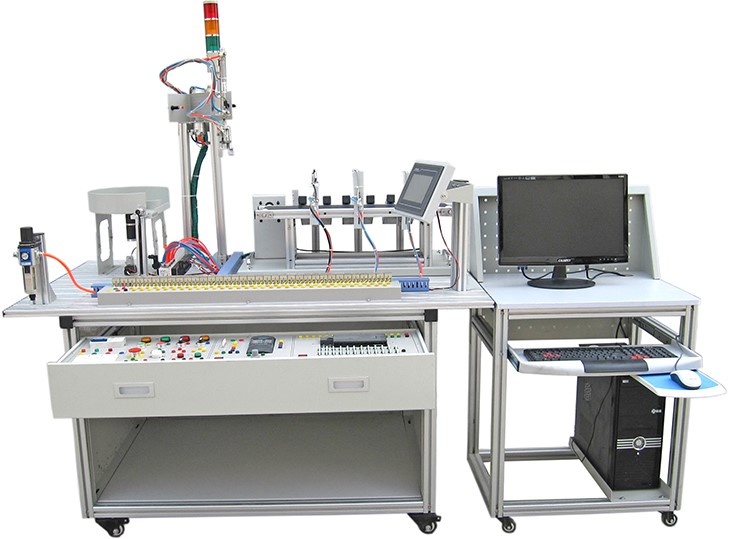 光機電氣一體化控制實訓(xùn)系統(tǒng)"是依據(jù)機電一體化教學(xué)的要求而精心研制的。它在接近工業(yè)生產(chǎn)制造現(xiàn)場基礎(chǔ)上又針對教學(xué)及實訓(xùn)目的進行了專門設(shè)計,強化了機電一體化的安裝與調(diào)試能力。實訓(xùn)裝置由型材導(dǎo)軌式實訓(xùn)臺、典型機電一體化設(shè)備機械部件、PLC