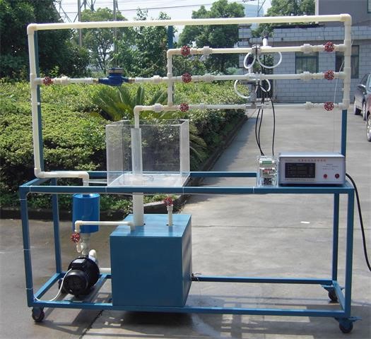 主要配置:移動式不銹鋼實驗臺、循環(huán)水箱;計量水箱;循環(huán)水泵;d=40mm、d=32mm、d=20mm、d=15mm測試管段;渦輪流量計;孔板流量計;文丘里流量計;翼片流量計;差壓傳感器;8點巡檢儀等。計算機接口。
