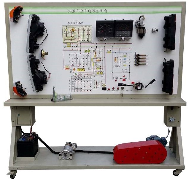 全車電路板試教板教學設備采用 全新東風牽引車EQ2102 柴油機整車電器實物為基礎,充分展示汽車儀表系統(tǒng)、燈光系統(tǒng)、雨刮系統(tǒng)、喇叭系統(tǒng)、發(fā)動機電器系統(tǒng)、起動系統(tǒng)和充電系統(tǒng)等汽車電器各系統(tǒng)的組成結構和工作過程。