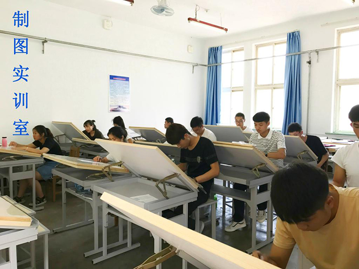 工程制圖實訓(xùn)室是專業(yè)基礎(chǔ)實訓(xùn)室,有制圖桌椅、丁字尺50套、畫法幾何投影模型等工程制圖實訓(xùn)裝置。主要承擔(dān)土建及機械類各專業(yè)學(xué)生的實訓(xùn)任務(wù)。、圖紙手繪能力,培養(yǎng)學(xué)生分析圖紙問題和解決實踐工程難題的能力。