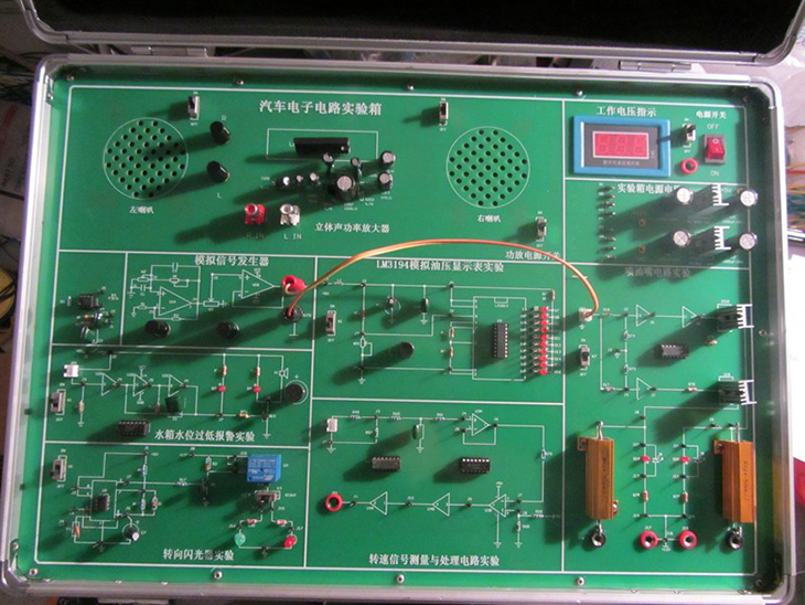 汽車電子電路實驗箱結(jié)合汽車電學(xué)的典型基本電路,由淺到深地設(shè)計了二極管和三極管基本實驗、線性集成穩(wěn)壓電源實驗、噴油器驅(qū)動實驗、轉(zhuǎn)速信號測量與處理實驗、水箱水位過低報警實驗、轉(zhuǎn)向閃光器實驗等六個實驗項目,提供了一個給學(xué)生提高動手能力,深入理解汽車電學(xué)基礎(chǔ)知識的實驗平臺。