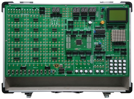 數(shù)字電路、EDA技術(shù)實(shí)驗(yàn)設(shè)計(jì)系統(tǒng)由鋁木合金箱體、開(kāi)關(guān)電源、常用信號(hào)源、常用模數(shù)接口、人機(jī)接口、接插式CPLD/FPGA下載板和實(shí)驗(yàn)電路區(qū)等組成。其中信號(hào)源由高性能單片機(jī)產(chǎn)生,穩(wěn)定可靠。全部的實(shí)驗(yàn)用信號(hào)線的連接采用高可靠杜邦線和單根2號(hào)插針線,避免接觸不良現(xiàn)象反生。擴(kuò)展設(shè)計(jì)的CPLD/FPGA開(kāi)發(fā)板為用戶開(kāi)展創(chuàng)新設(shè)計(jì)提供了良好的硬件平臺(tái)。本實(shí)驗(yàn)箱適用于本專科院校所有電類和非電類專業(yè)《數(shù)字電子技術(shù)》、《數(shù)字系統(tǒng)設(shè)計(jì)》、《EDA技術(shù)設(shè)計(jì)》等課程的實(shí)驗(yàn)、實(shí)訓(xùn)和創(chuàng)新設(shè)計(jì),有出版社出版的配套教材。